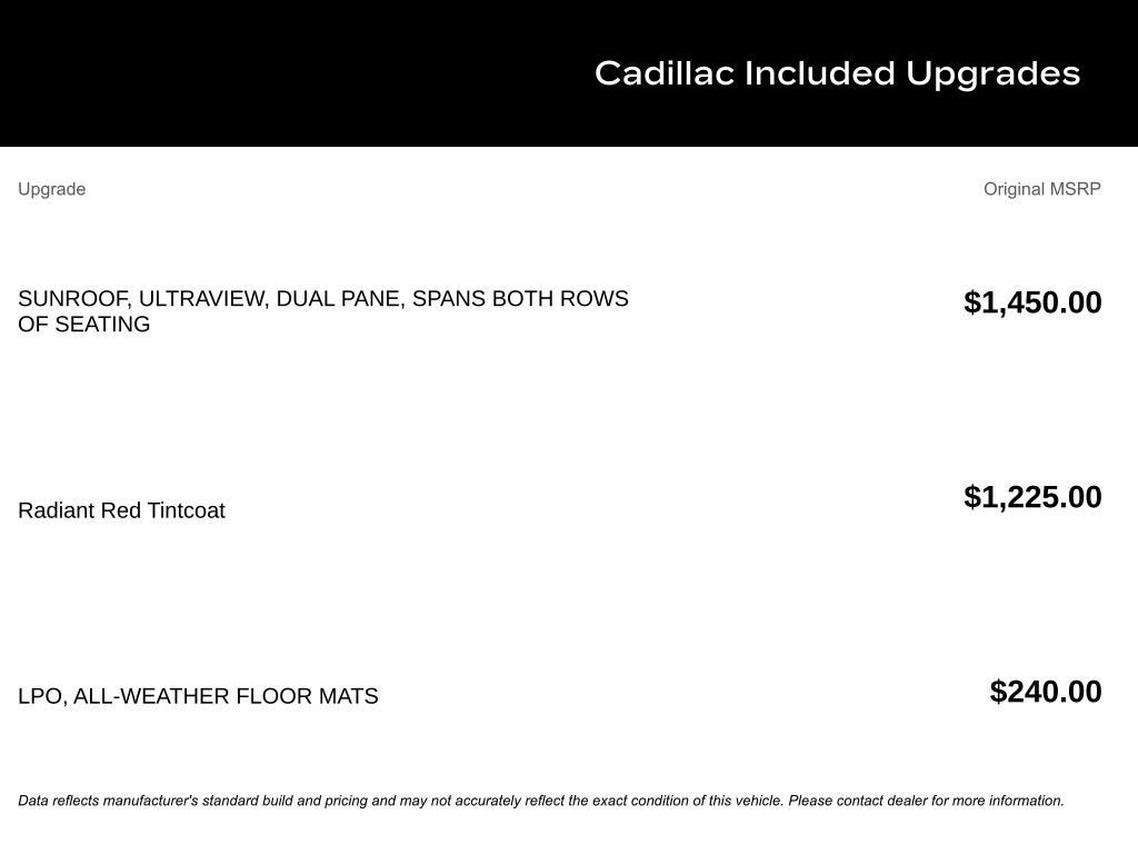 $4,089 off MSRP! 2026 Radiant Red Tintcoat Cadillac CT5 Premium Luxury 10-Speed Automatic 15 Speakers, 4-Wheel Disc Brakes, 8-Way Power Driver Seat Adjuster, 8-Way Power Front Passenger Seat Adjuster, ABS brakes, Air Conditioning, AKG 15-Speaker System, All-Weather Floor Mats, Alloy wheels, AM/FM radio: SiriusXM with 360L, Apple CarPlay/Android Auto, Auto High-beam Headlights, Auto-dimming door mirrors, Auto-dimming Rear-View mirror, Automatic Stop/Start w/Disable, Automatic temperature control, Brake assist, Bumpers: body-color, Compass, Delay-off headlights, Driver 4-Way Power Lumbar Seat Adjuster, Driver door bin, Driver Power Lumbar Massage Seat, Driver Power Seatback Bolster Adjustment, Driver vanity mirror, Dual front impact airbags, Dual front side impact airbags, Electronic Stability Control, Emergency communication system: OnStar and Cadillac connected services capable, Exterior Parking Camera Rear, Four wheel independent suspension, Front anti-roll bar, Front Bucket Seats, Front Center Armrest, Front dual zone A/C, Front Passenger 4-Way Power Lumbar Seat Adjuster, Front Passenger Power Lumbar Massage Seat, Front Passenger Power Seatback Bolster Adjustment, Front reading lights, Fully automatic headlights, Garage door transmitter, Heated door mirrors, Heated Driver & Front Passenger Seats, Heated front seats, Heated steering wheel, Illuminated entry, Knee airbag, Leather Seating Surfaces w/Mini-Perforated Inserts, Leather steering wheel, Low tire pressure warning, Memory seat, Navigation System, Occupant sensing airbag, Outside temperature display, Overhead airbag, Overhead console, Panic alarm, Passenger door bin, Passenger vanity mirror, Power door mirrors, Power driver seat, Power passenger seat, Power steering, Power windows, Preferred Equipment Group 1SD, Radio data system, Radio: Google Built-In Infotainment Experience, Rain sensing wipers, Rear anti-roll bar, Rear reading lights, Rear seat center armrest, Rear window defroster, Remote keyless entry, SiriusXM w/360L Trial Subscription, Speed control, Speed-sensing steering, Split folding rear seat, Steering wheel memory, Steering wheel mounted audio controls, Tachometer, Telescoping steering wheel, Tilt steering wheel, Traction control, Trip computer, Turn signal indicator mirrors, UltraView Dual Pane Sunroof, Variably intermittent wipers, Ventilated Driver & Front Passenger Seats, Ventilated front seats, Voltmeter, Wheels: 18 Premium Painted Alloy. Price includes: $500 - Purchase Allowance. Exp. 02/02/2026 $500 - Purchase Allowance. Exp. 02/02/2026