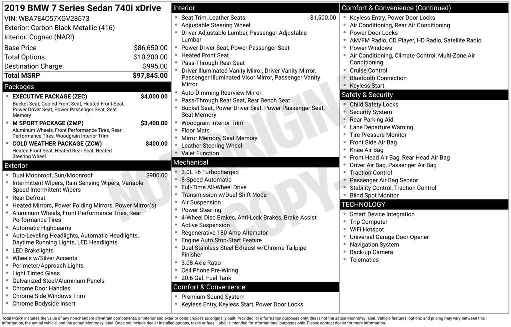**For Sale: 2019 BMW 7 Series 740i xDrive with features such as a *Sunroof/Moonroof*, *Heated front seats*, *Bluetooth®/Hands free phone*, *Remote vehicle start*, *Rear view camera*, and much more listed below!!**