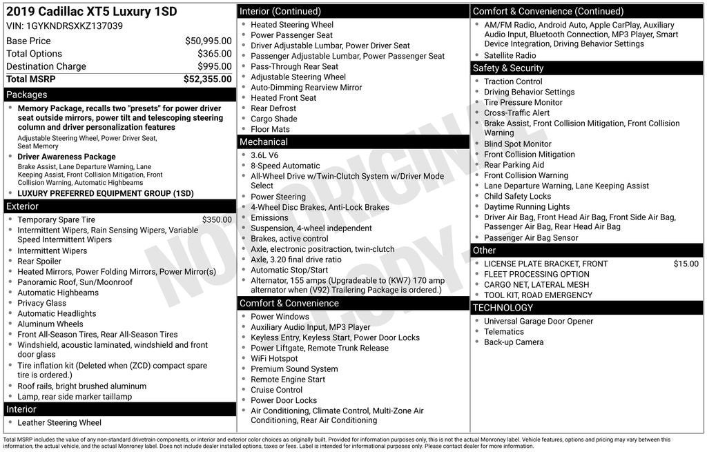 **For Sale: 2019 Cadillac XT5 Luxury with features such as a *Sunroof/Moonroof*, *Heated front seats*, *Bluetooth®/Hands free phone*, *Adaptive remote start*, *Rear view camera*, and much more listed below!!**Check out this **2019 Cadillac XT5 Luxury**, a refined and stylish midsize luxury SUV that combines elegance, advanced technology, and a smooth, comfortable ride. With **Only one previous owner**, this XT5 offers confidence, reliability, and the premium experience Cadillac is known for.Riding on **18-inch wheels**, it delivers a bold look while maintaining smooth and confident handling. Inside, the XT5 offers a **Luxurious and well-appointed cabin**, designed for comfort and convenience. High-quality materials, thoughtful layout, and supportive seating create a first-class experience for both driver and passengers. Stay connected with an 8-inch touchscreen featuring **Bluetooth®/Hands free phone** and **Apple CarPlay/Android audio**, giving you easy access to navigation, music, calls, and apps while on the go.Comfort is further enhanced with **Heated front seats** and a **Heated steering wheel**, along with **Adaptive remote start** and a **Sunroof/Moonroof**, ensuring every drive is enjoyable. Under the hood, this XT5 delivers a **Smooth and capable driving experience**, blending responsive performance with refined ride quality.With **Only one previous owner** and Cadillac’s signature blend of style, comfort, and performance, this 2019 Cadillac XT5 Luxury is an excellent choice for anyone seeking a dependable and upscale luxury SUV. Visit **Lavery Automotive** or call **(330)-800-4048** to schedule your test drive today!Recent Arrival! If you are interested in shopping for a vehicle please send us an email, call or chat. We can use video and provide you all the information you need without coming into the dealership. Our Internet Sales team can help you gather information remotely. We can arrange for you to test drive the vehicle at your home (within proximity to our dealership) If you do decide to purchase we can DocuSign or deliver the vehicle to you or arrange an appointment to pick it up at the dealership. Check out on Google our 5 star reviews from real customers! Completely satisfied with their buying experience.Though we try our best to remove vehicles when sold please confirm information and availability before making a purchase decision.Dealership is not responsible for clerical, computer generated or data entry errors as it relates to vehicles, prices, equipment or incentives. Though we try our best to remove vehicles when sold please confirm information and availability before making a purchase decision.