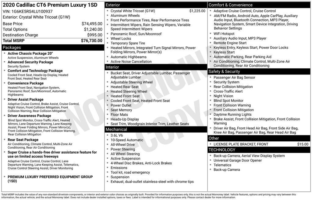 CarBravo 2020 Cadillac CT6 3.6L Premium Luxury