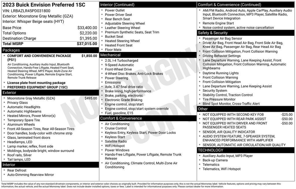 **For Sale: 2023 Buick Envision Preferred FWD with features such as *Bluetooth®/Hands free phone*, *Remote vehicle start*, *Apple car play/Android audio*, *Rear view camera*, and much more listed below!!**