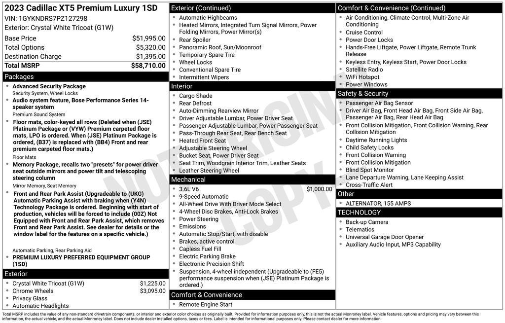 **For Sale: 2023 Cadillac XT5 Premium Luxury AWD with features such as a *Sunroof/Moonroof*, *Heated front seats*, *Bluetooth®/Hands free phone*, *Keyless entry*, *Rear view camera*, and much more listed below!!**