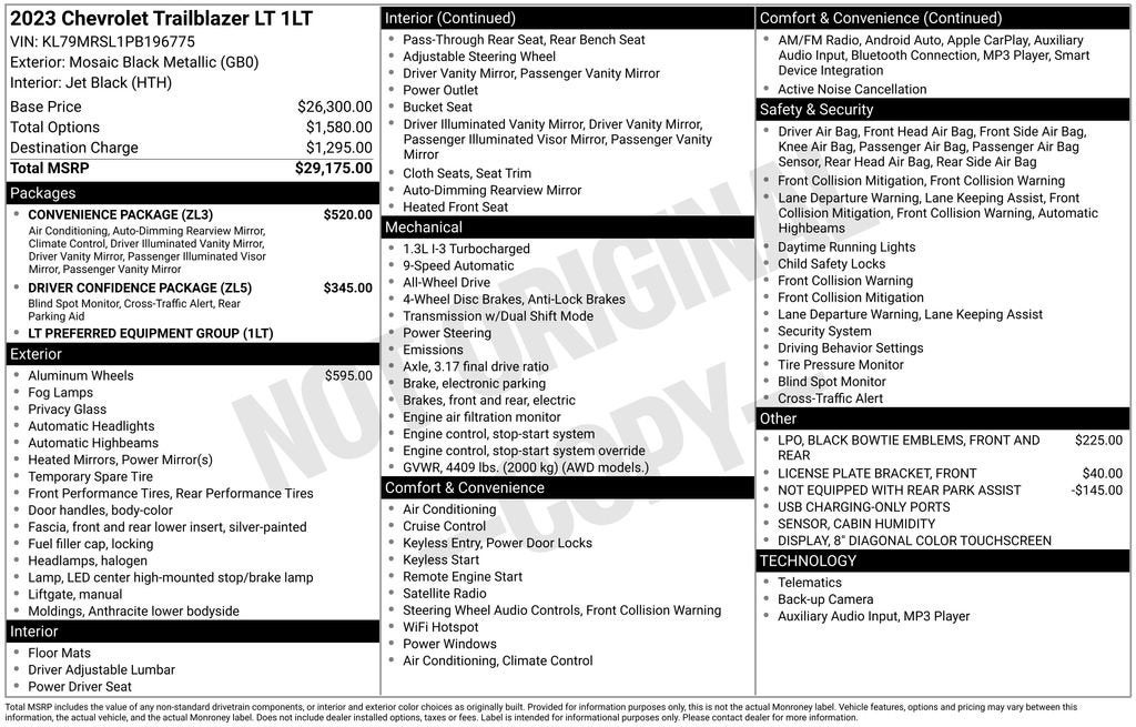 **For Sale: 2023 Chevrolet Trailblazer LT with features such as *Bluetooth®/Hands free phone*, *Keyless open/start*, *Apple car play/Android audio*, *Rear view camera*, and much more listed below!!**