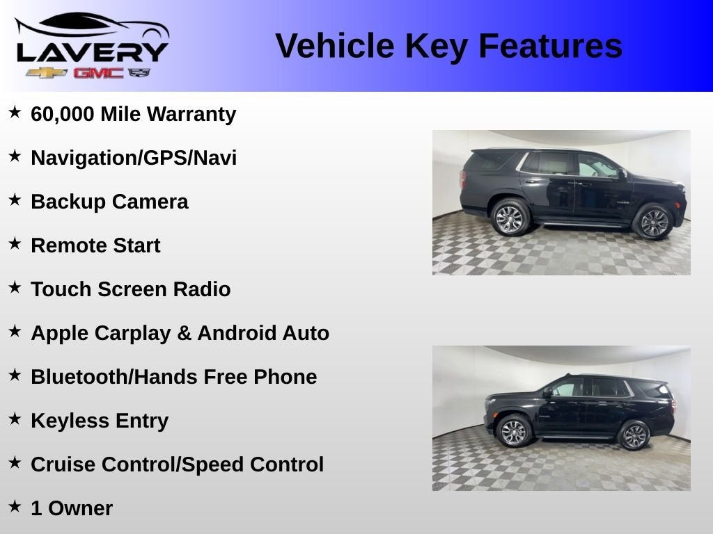 With **Only one previous owner**, outstanding capability, and the added confidence of a **60,000 mile warranty**, this 2024 Chevrolet Tahoe 4WD LS is an excellent choice for anyone in need of a dependable and versatile full-size SUV. Visit **Lavery Automotive** or call **(330)-800-4048** to schedule your test drive today!